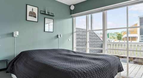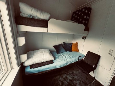 Et soveværrelse med dobbeltseng, et værelse med køjesenge, samt en mindreplads med mulighed for madras.