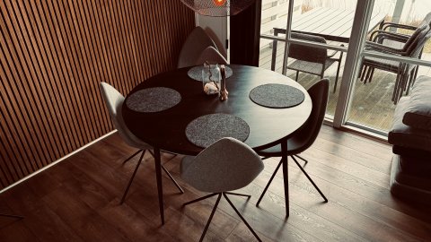 Stort åben køkken med komfur, køleskab, opvaskemaskin. m.m, spiseplads til 6 personer, hyggelig stue med TV, - 2 tereasser med havemøbler til 6 personer.