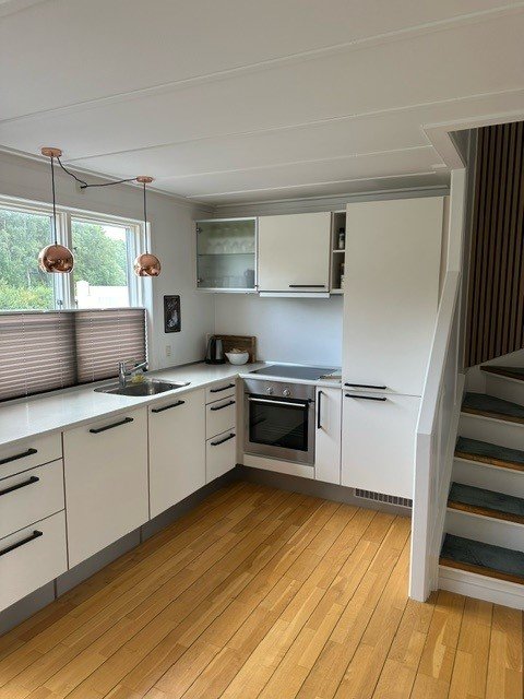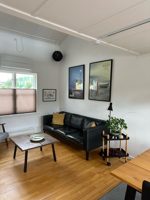 PÅ 1 sal er hyggelig stue samt et værelse med dobbeltseng, og her er der udgang til rerrasse.